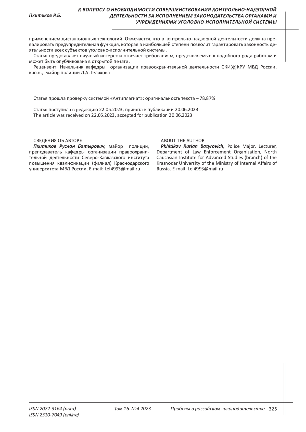 6. Мержоев М.К. О существе и предмете прокурорского надзора за исполнением законов при содержании подозреваемых и обвиняемых под стражей в изоляторах временного содержания // Пробелы в российском законодательстве. 2020. Т. 13. № 5. EDN: XKOTGW