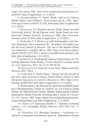 7. Кузнецова Т.А. Русским словом. Начо Дуато завершил Чеховский фестиваль // Коммерсант. - 27.07.2010. - URL: http://www.kommersant.ru/doc/1475932 (дата обращения: 11.11.2023).