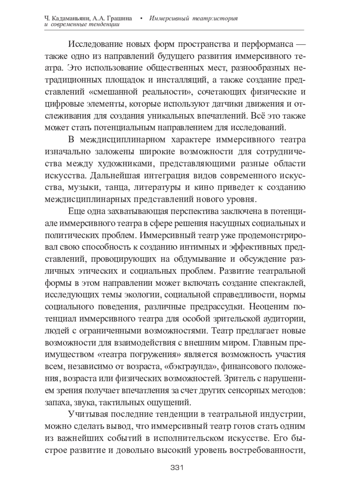 6. Alston A. The promise of experience: Immersive theatre in the experience economy // Reframing immersive theatre: The politics and pragmatics of participatory performance. - 2016. - С. 243-264.
