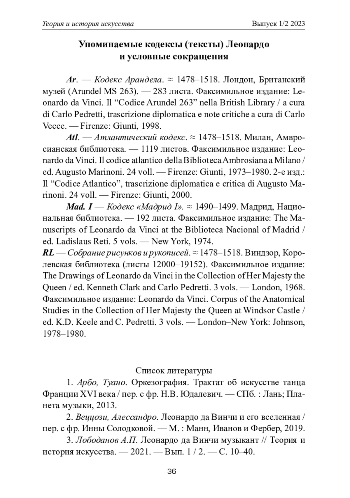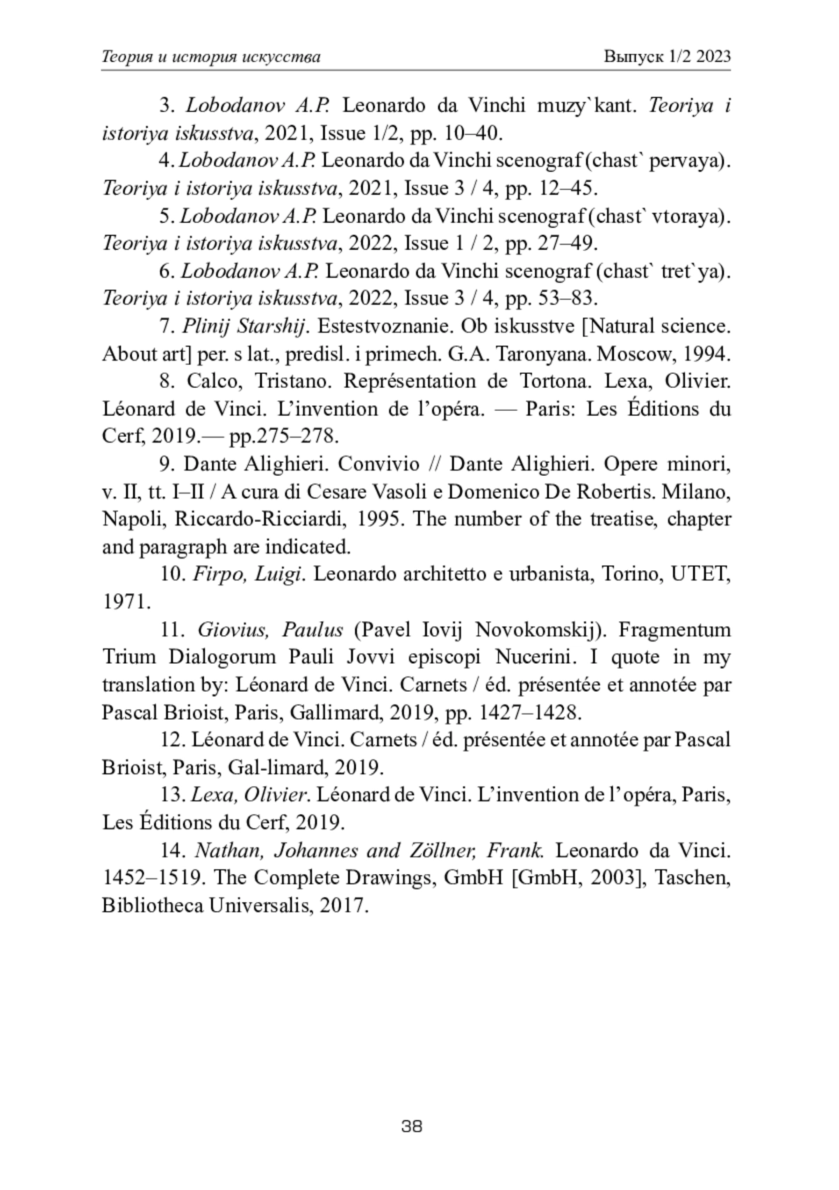 3. Лободанов А.П. Леонардо да Винчи музыкант // Теория и история искусства. - 2021. - Вып. 1 / 2. - С. 10-40. EDN: GGTTYL