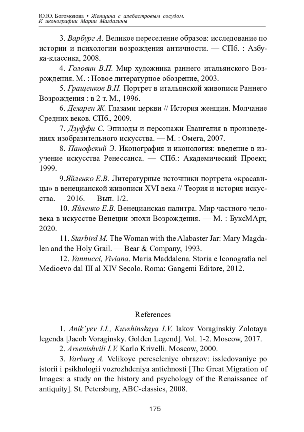 9. Яйленко Е.В. Литературные источники портрета “красавицы” в венецианской живописи XVI века // Теория и история искусства. - 2016. - Вып. 1/2. EDN: DFBVMA