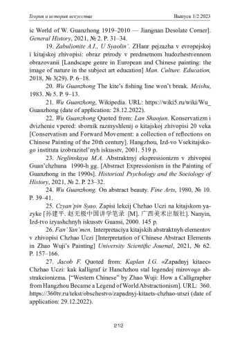 23. Неглинская М.А. Абстрактный экспрессионизм в живописи Гуаньчжуна 1990-х гг. // Историческая психология и социология истории. - 2021. - № 2. - С. 23-32. EDN: HQTKCQ