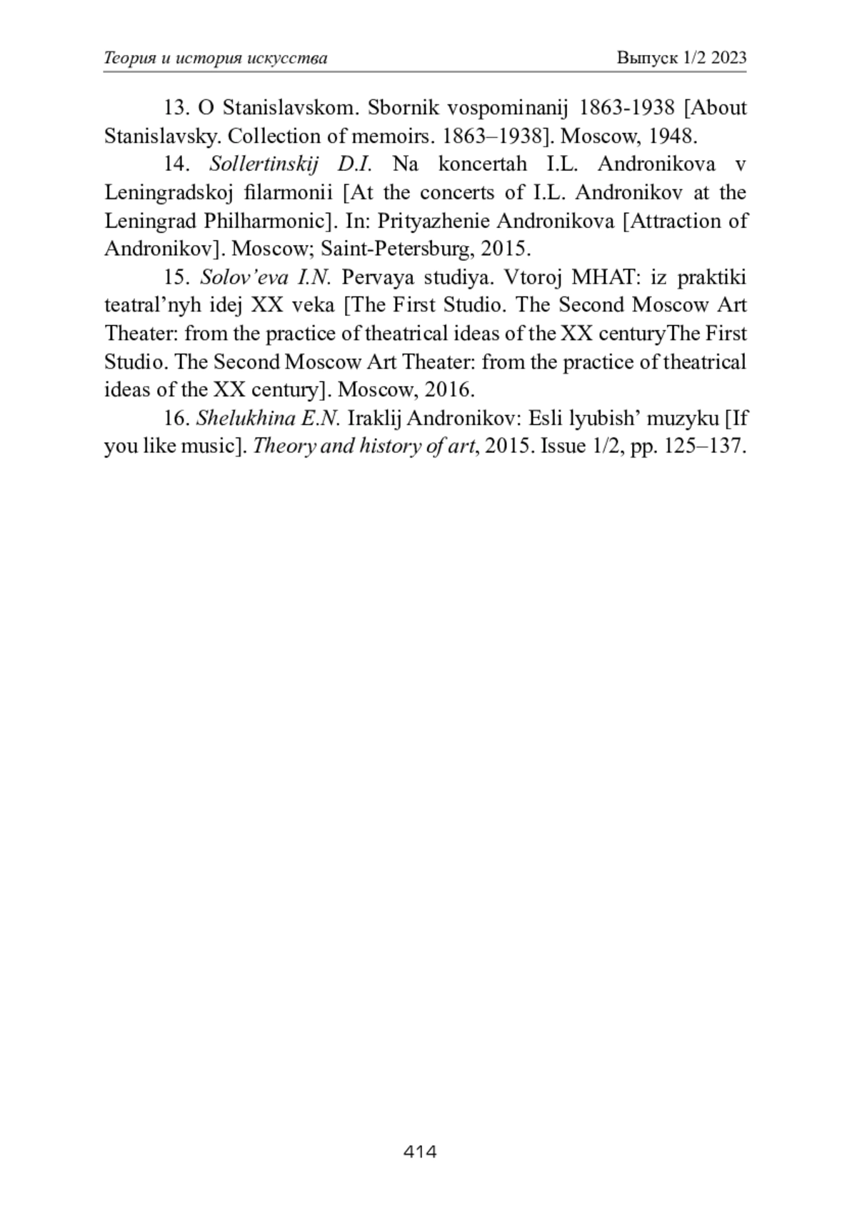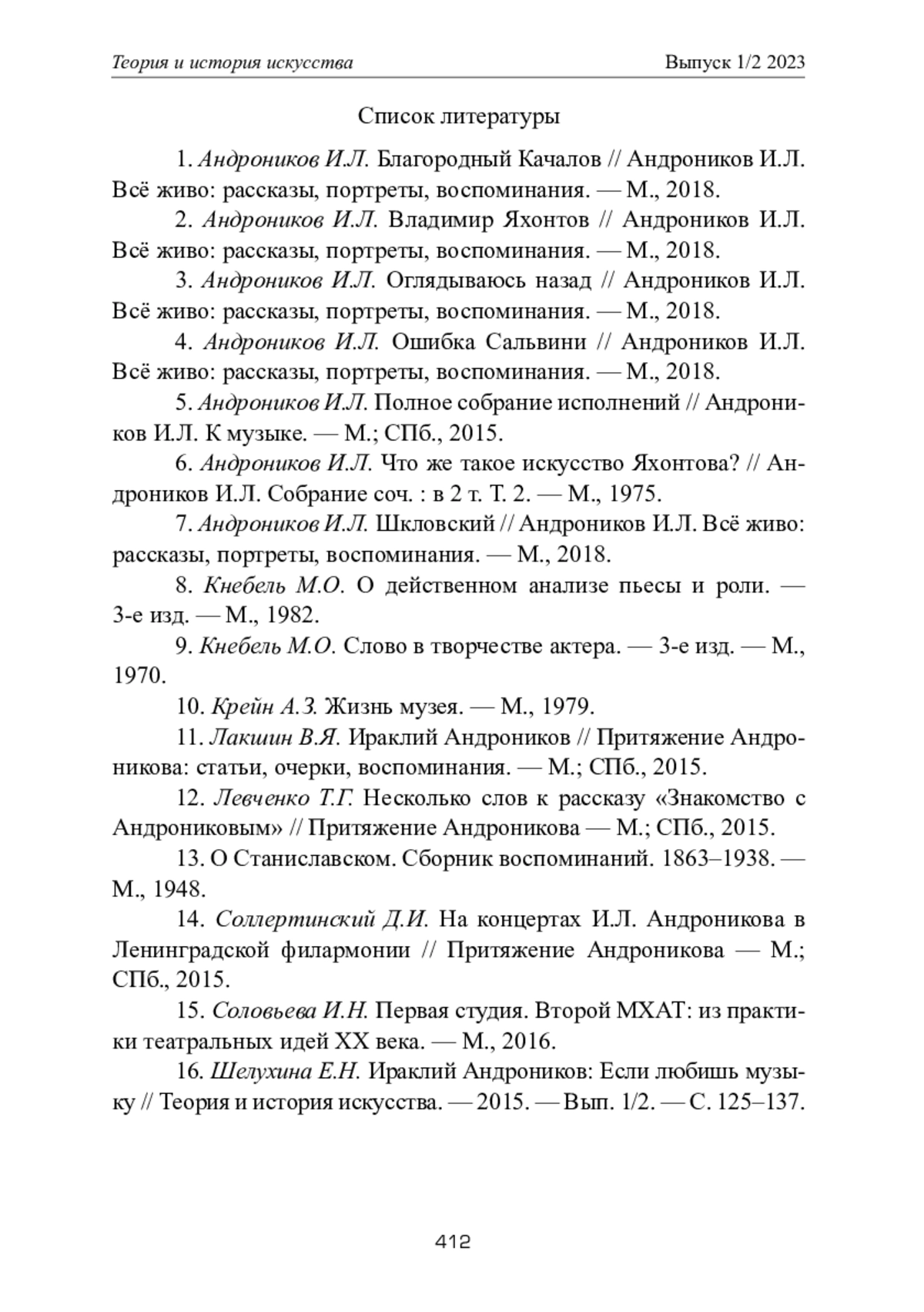16. Шелухина Е.Н. Ираклий Андроников: Если любишь музыку // Теория и история искусства. - 2015. - Вып. 1/2. - С. 125-137.