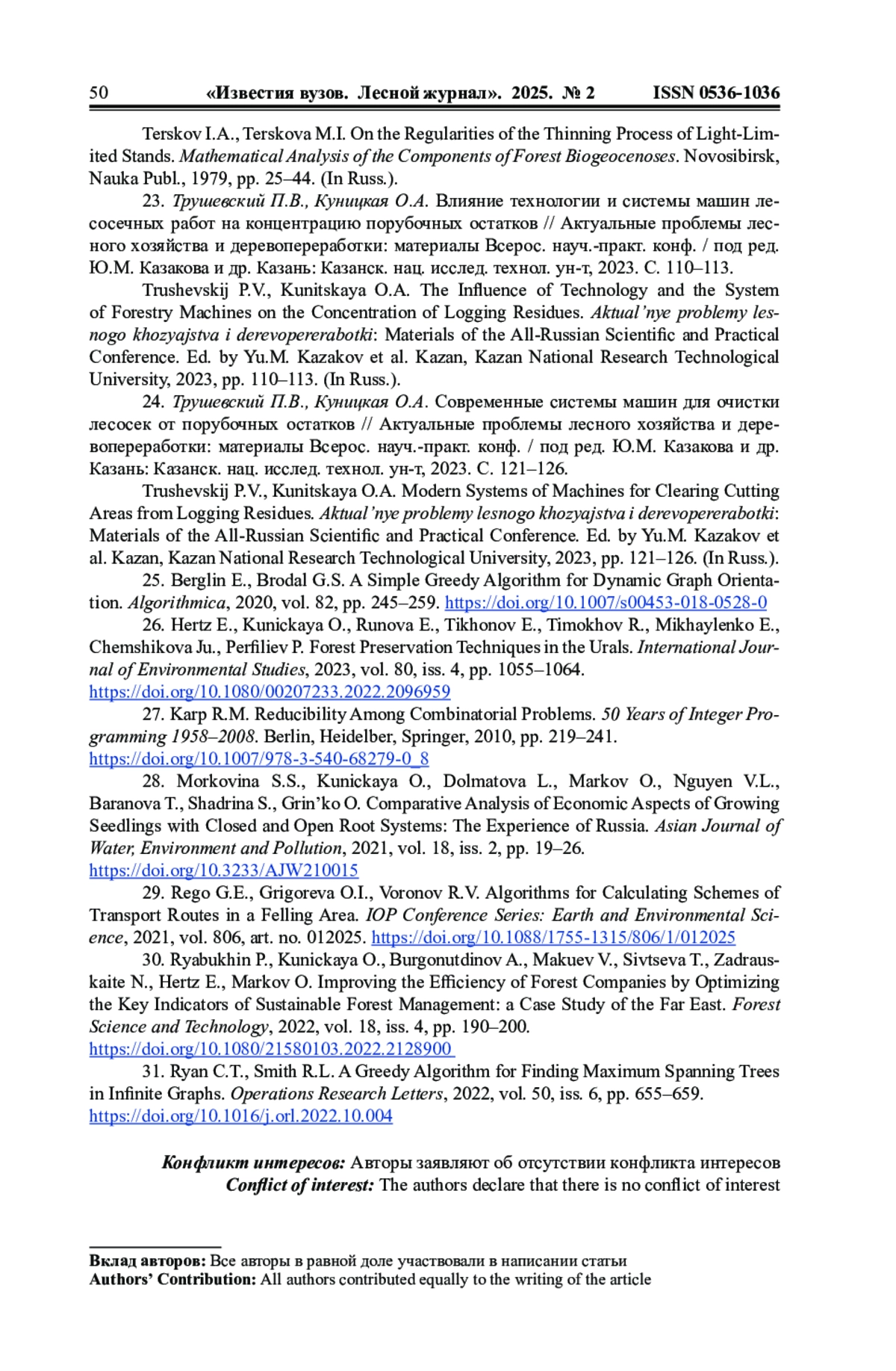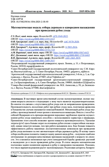 Статья: МАТЕМАТИЧЕСКАЯ МОДЕЛЬ ОТБОРА ДЕРЕВЬЕВ В ОДНОРОДНОМ НАСАЖДЕНИИ ПРИ ПРОВЕДЕНИИ РУБОК УХОДА (2025)