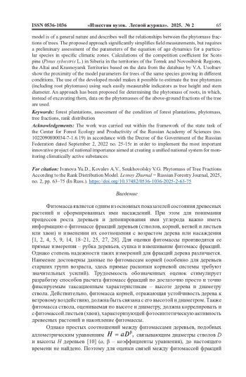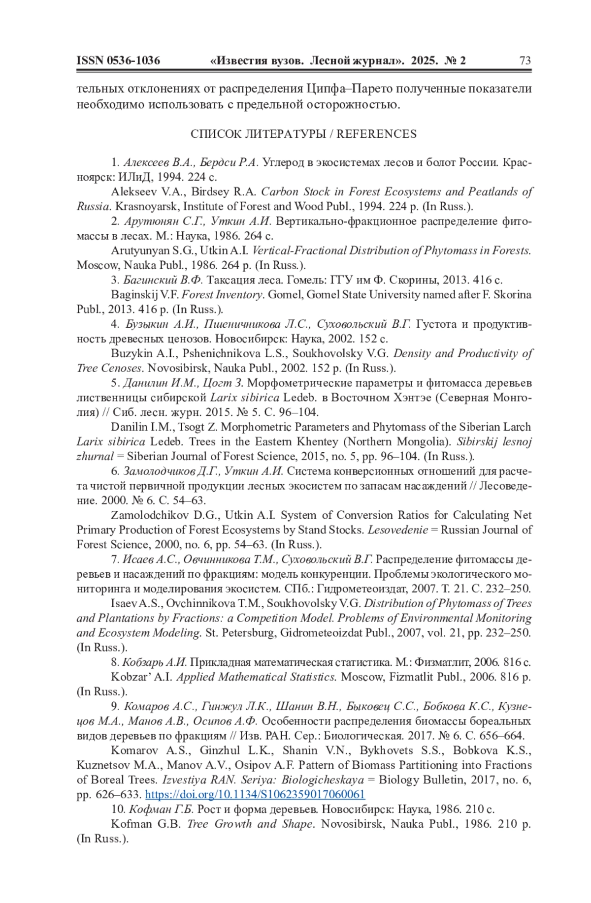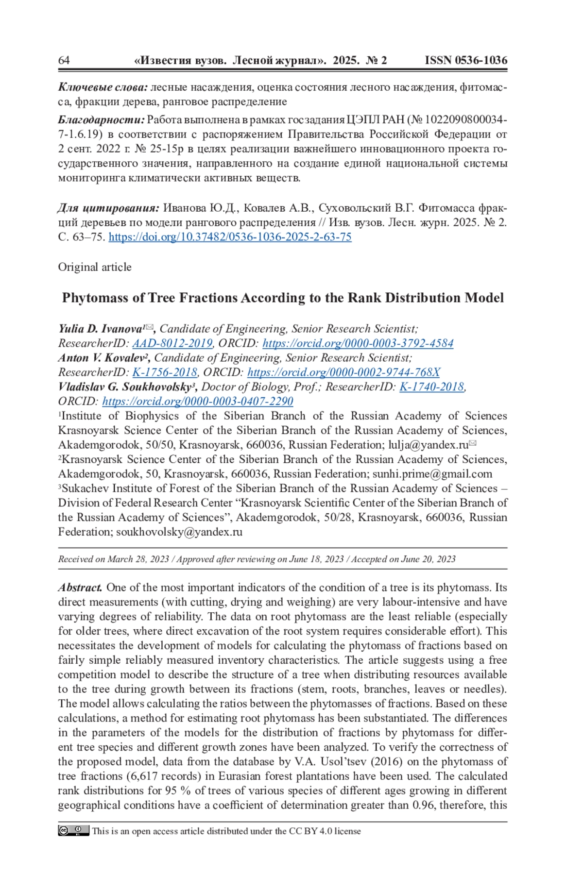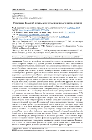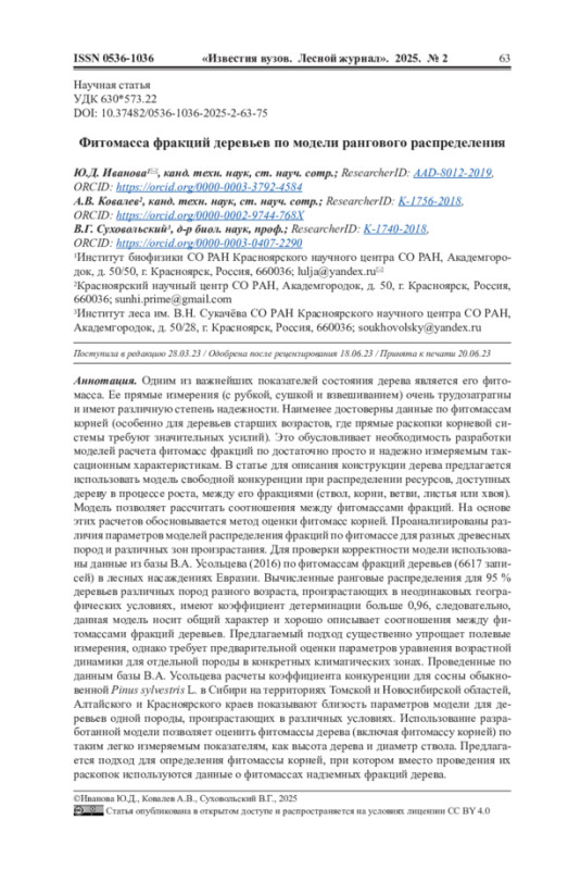 ИВАНОВА Ю. Д., КОВАЛЕВ А. В., СУХОВОЛЬСКИЙ В. Г. ФИТОМАССА ФРАКЦИЙ ДЕРЕВЬЕВ ПО МОДЕЛИ РАНГОВОГО РАСПРЕДЕЛЕНИЯ // ИЗВЕСТИЯ ВЫСШИХ УЧЕБНЫХ ЗАВЕДЕНИЙ. ЛЕСНОЙ ЖУРНАЛ. 2025. № 2 (404)