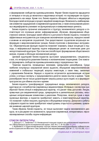 Статья: БИЗНЕС-ПОДКАСТ КАК СОВРЕМЕННЫЙ ЖАНР ЭКОНОМИЧЕСКОГО ДИСКУРСА (2025)