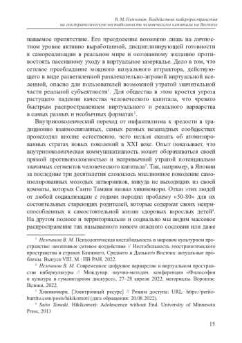 15. Немчинов В. М. Современное цифровое варварство в виртуальном пространстве киберкультуры // Междунар. научно-методич. конференция “Философия и культура в гуманитарном дискурсе”, 27-28 апреля 2022: материалы. Воронеж: Истоки, 2022.