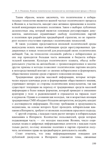 Демократизация японского общества после Второй мировой войны открыла путь для представителей различных политических сил Японии, которые вышли на политическую арену и стали бороться за внимание и поддержку избирателей. Со временем политические партии и политики стали использовать в своей борьбе особые политические технологии. В их задачу входит организовывать конкретные избирательные кампании с привлечением средств массовой информации, Интернета, социальных сетей, социологических опросов, а также прорабатывать тактику и стратегию конкретных действий на весь период выборов. Таким образом, политические и избирательные технологии являются важной частью политического процесса в Японии, и в частности находят свое активное применение в политической конкуренции японских политиков.