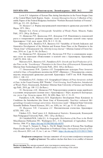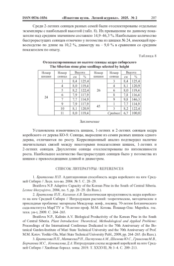 Статья: ИЗМЕНЧИВОСТЬ ПОКАЗАТЕЛЕЙ ШИШЕК И СЕЯНЦЕВ КЕДРА КОРЕЙСКОГО В УСЛОВИЯХ ИНТРОДУКЦИИ (2025)