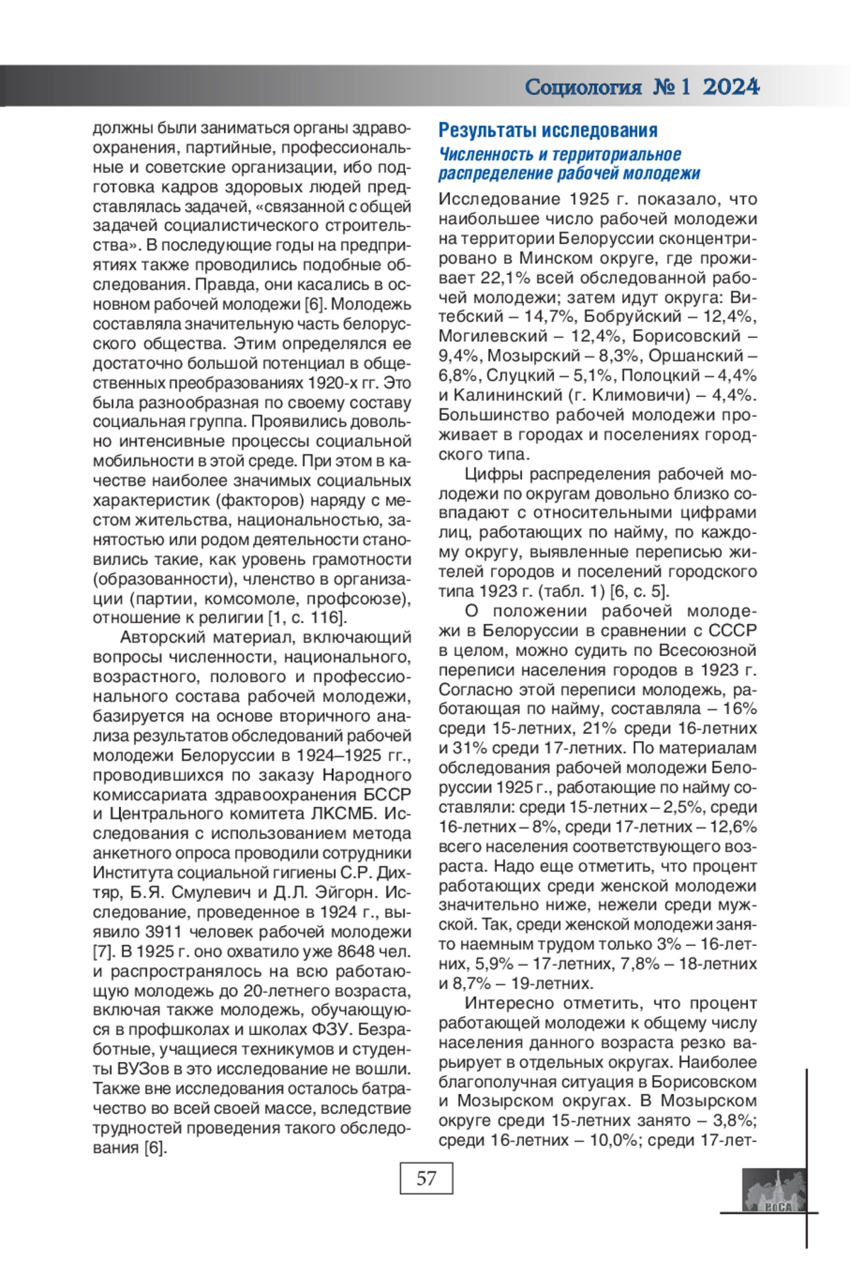7. Дихтяр С.Р., Эйгорн Д.Л. Рабочая молодежь Белоруссии // Белорусская медицинская мысль. 1924. № 9.