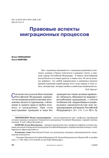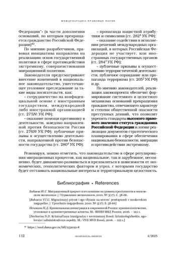 4. Телегина Е.Г., Назаренко Е.В. Криминологическая характеристика миграционной преступности и её предупреждение // Вестник Нижегородского государственного университета им. Р.И. Лобачевского. 2020. № 2. С. 193-199.