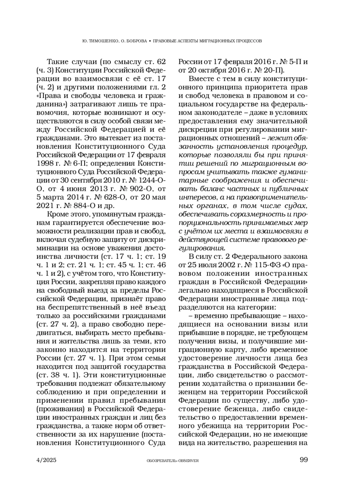 В работе приведены разъяснения Конституционного Суда России по основным правовым актам в сфере миграции и статуса лиц, находящихся в России, доктринальные постулаты в сравнительном анализе зарубежного опыта, отражены новационные изменения законодательства, данные статистики правонарушаемости в сфере миграции.