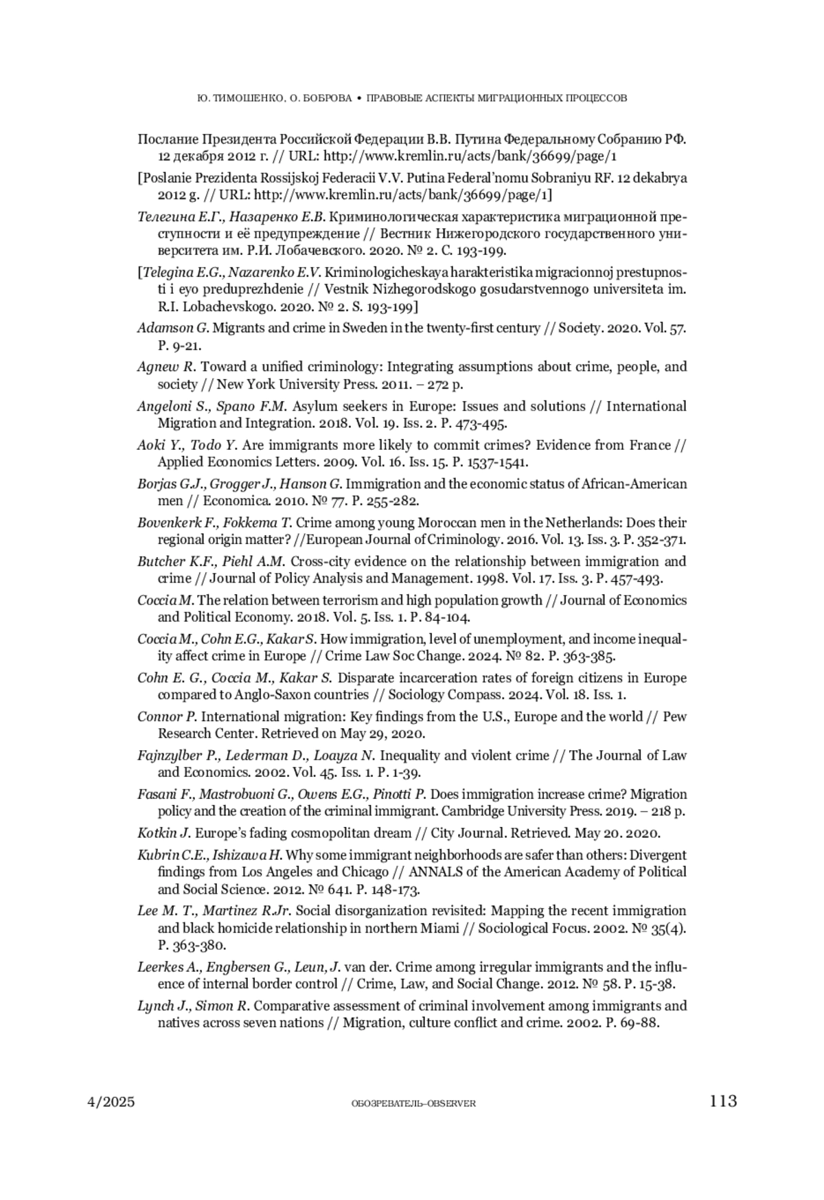 30. Wortley S. The immigration-crime connection: Competing theoretical perspectives // International Migration and Integration. 2009. № 10. Р. 349-358.