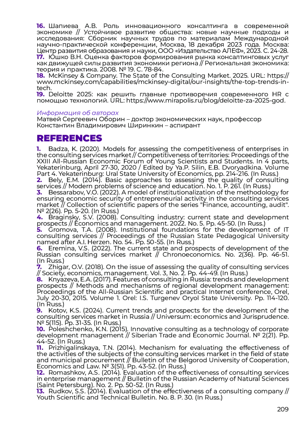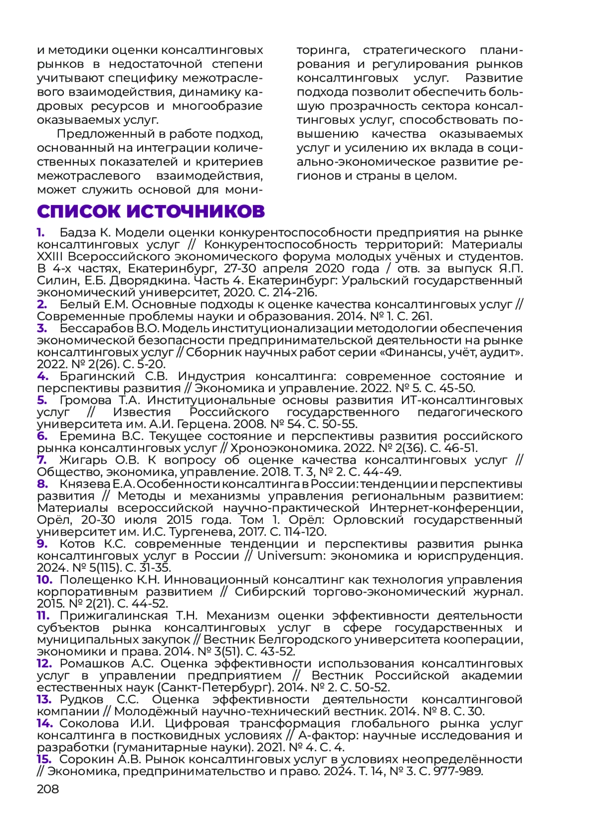 15. Сорокин А.В. Рынок консалтинговых услуг в условиях неопределённости // Экономика, предпринимательство и право. 2024. Т. 14, № 3. С. 977-989.