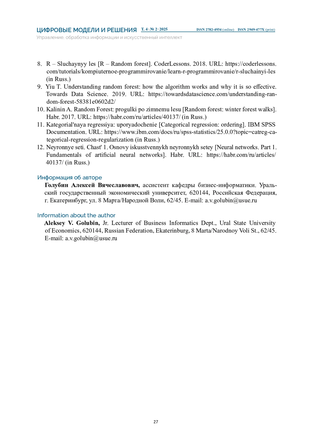 10. Калинин А. Random Forest: прогулки по зимнему лесу // Habr. 2017. URL: https://habr.com/ru/articles/320726/(дата обращения: 17.03.2024).