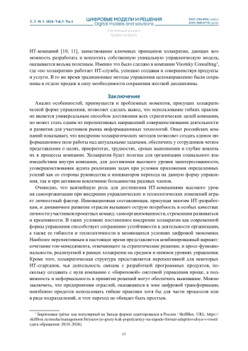Статья: ХОЛАКРАТИЯ КАК ГИБКАЯ ТЕХНОЛОГИЯ УПРАВЛЕНИЯ ИТ-КОМПАНИЯМИ (2024)