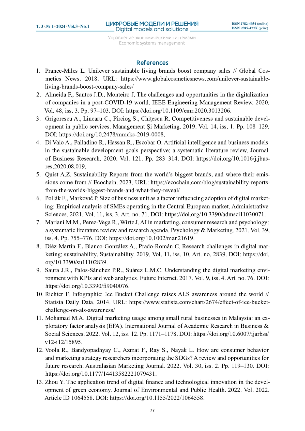 Статья: DIGITAL MARKETING AS AN ELEMENT OF SUSTAINABLE DEVELOPMENT: TRENDS, CHALLENGES AND OPPORTUNITIES (2024)