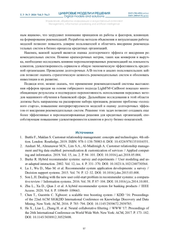 Статья: РЕКОМЕНДАТЕЛЬНАЯ СИСТЕМА ВЫСТАВЛЕНИЯ ОФФЕРОВ В CRM РОЗНИЧНОГО БИЗНЕСА КРЕДИТНОЙ ОРГАНИЗАЦИИ (2024)