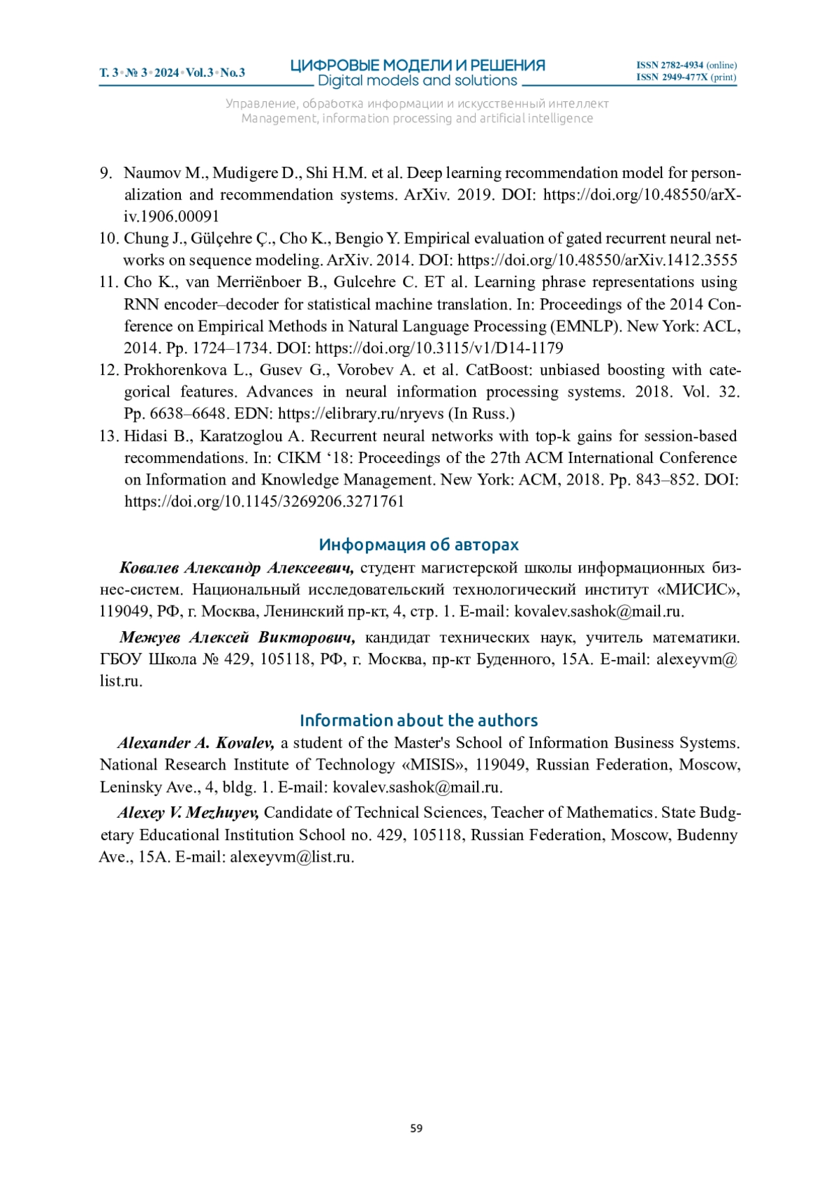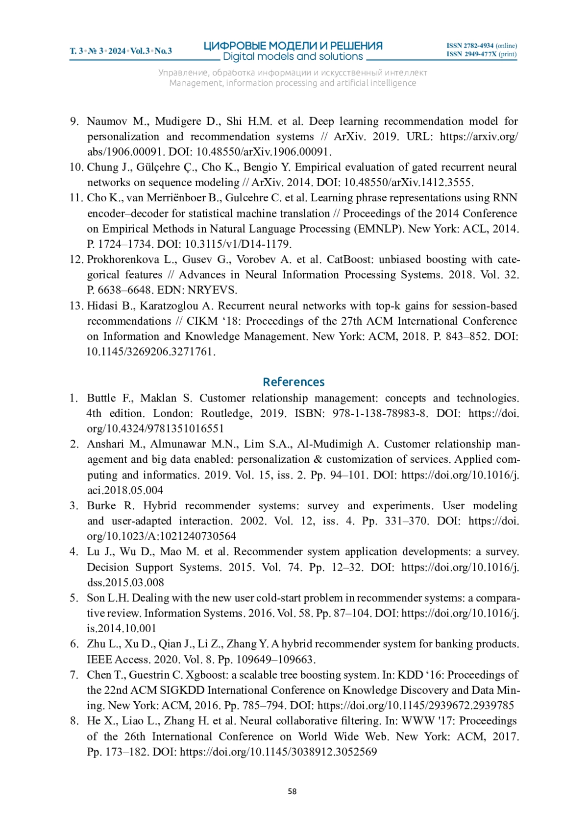 КОВАЛЕВ А. А., МЕЖУЕВ А. В. РЕКОМЕНДАТЕЛЬНАЯ СИСТЕМА ВЫСТАВЛЕНИЯ ОФФЕРОВ В CRM РОЗНИЧНОГО БИЗНЕСА КРЕДИТНОЙ ОРГАНИЗАЦИИ // ЦИФРОВЫЕ МОДЕЛИ И РЕШЕНИЯ. 2024. Т. 3 № 3