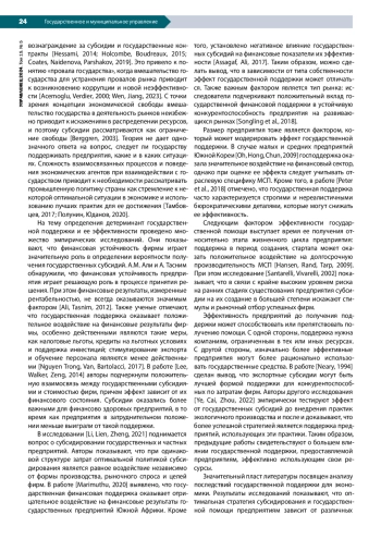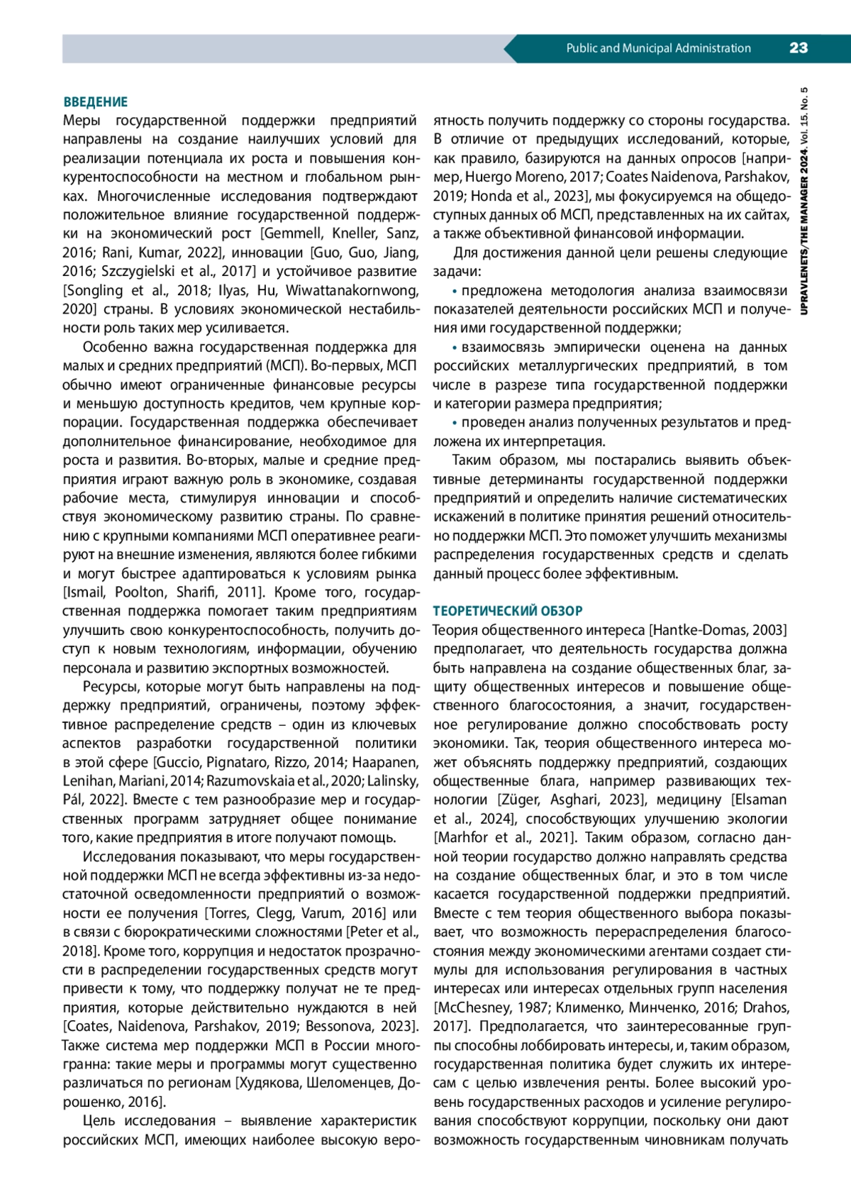 Статья: ДЕТЕРМИНАНТЫ ПОЛУЧЕНИЯ ГОСУДАРСТВЕННОЙ ПОДДЕРЖКИ МАЛЫМИ И СРЕДНИМИ ПРЕДПРИЯТИЯМИ В РОССИИ (2024)