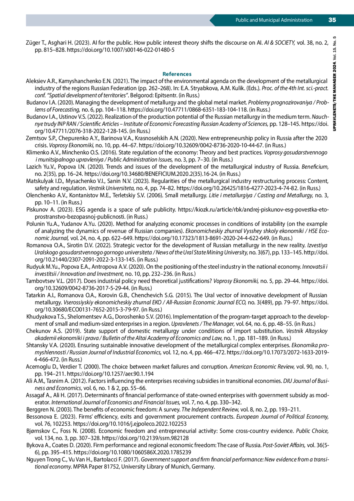 Меры государственной поддержки помогают преодолеть ограничения, препятствующие росту и развитию бизнеса, что особенно актуально для малых и средних предприятий (МСП). При этом важно, чтобы эти меры достигали целевых компаний и обеспечивали эффективное распределение ресурсов. Статья направлена на выявление ключевых характеристик российских МСП, влияющих на получение ими государственной поддержки. Методологической основой исследования являются теории общественного интереса, общественного выбора и концепция экономической свободы. Методом работы служит двухшаговый регрессионный анализ, в рамках которого сначала применяется модель бинарного выбора, а затем модель LASSO, позволяющая оценить содержание текстов на сайтах предприятий. Информационная база представлена обширным массивом данных о 2 176 российских предприятиях металлургической промышленности за период с 2020 по 2023 г., из которых 57 % получали государственную поддержку. Результаты первого шага оценки показали, что ключевыми факторами, связанными с вероятностью оказания господдержки, являются возраст предприятия и его размер, измеренный выручкой. На втором шаге установлено, что упоминание на сайте определенных товаров или материалов, местоположение МСП и их ориентация на иностранных стейкхолдеров существенно связаны с вероятностью государственной поддержки. Исследование предлагает инструментарий для анализа детерминант получения разных типов государственной поддержки малыми и средними предприятиями, а также подчеркивает важность такого анализа для более эффективного распределения государственных ресурсов
