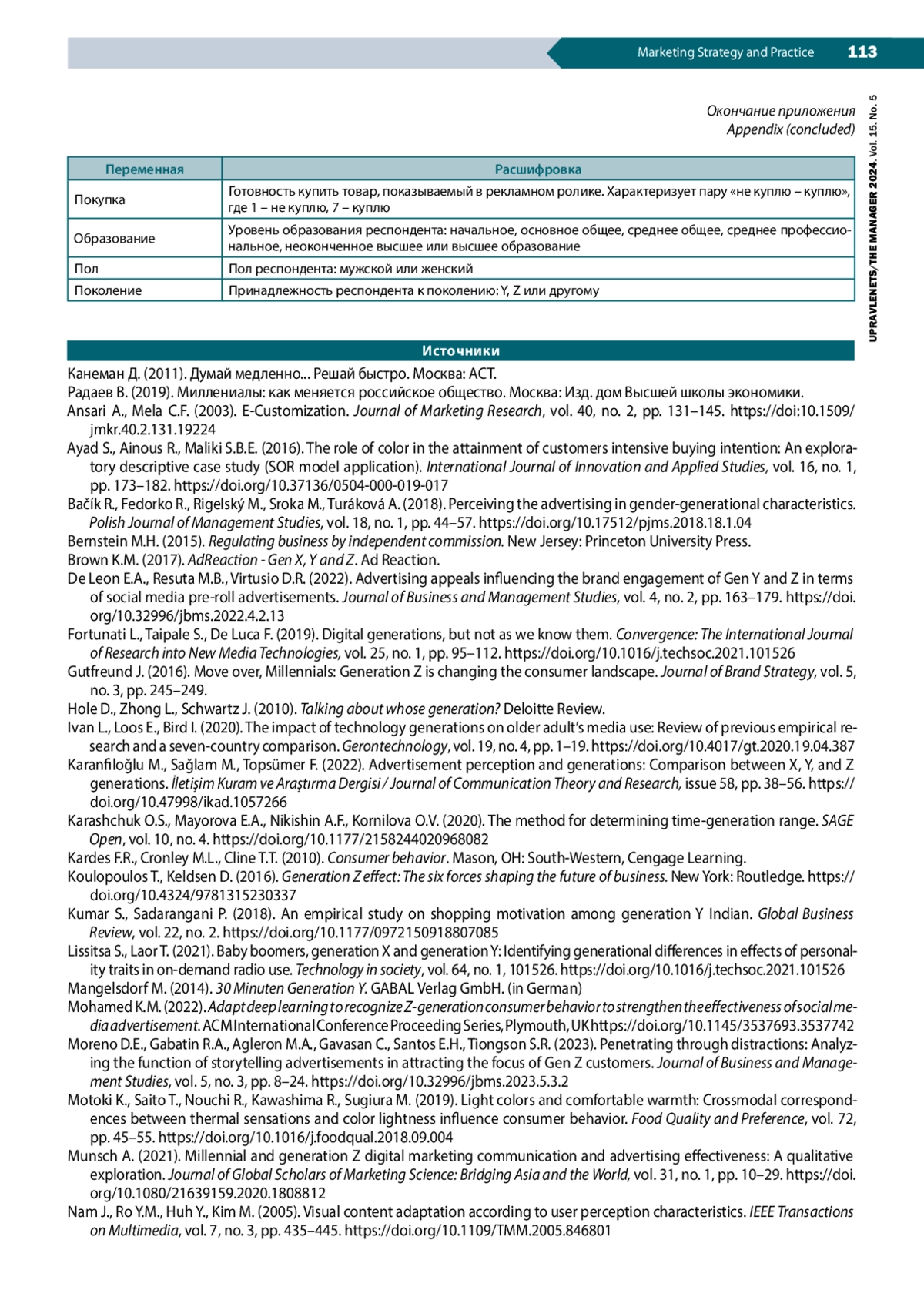 31. Roth-Cohen O., Rosenberg H., Lissitsa S. (2022). Are you talking to me? Generation X, Y, Z responses to mobile advertising. Convergence, vol. 28, no. 3, pp. 761-780. DOI: 10.1177/13548565211047342 EDN: FAIJNF