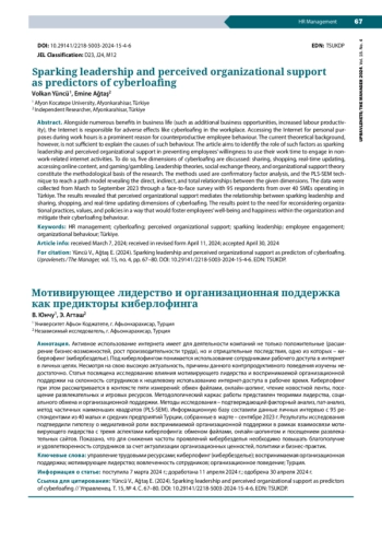 1. Abro S., Phulpoto N.H., Memon S., Brohi M.A. (2021). Influence of personality traits on cyberloafing in the service sector of Pakistan. Journal of Entrepreneurship, Management and Innovation, vol. 3, no. 2, pp. 262-283. DOI: 10.52633/jemi.v3i2.88 EDN: VDKPMI