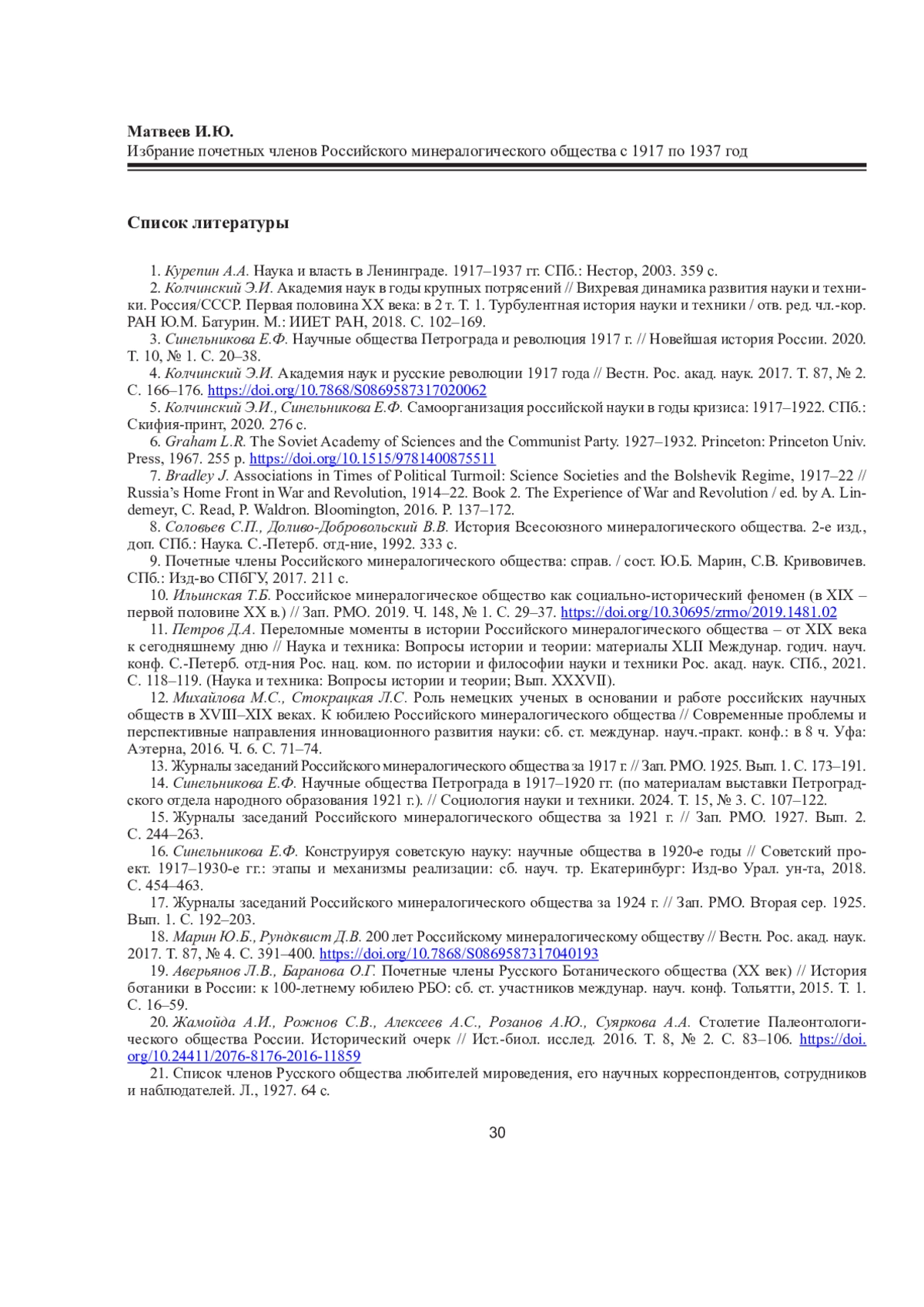 17. Журналы заседаний Российского минералогического общества за 1924 г. // Зап. РМО. Вторая сер. 1925. Вып. 1. С. 192-203.