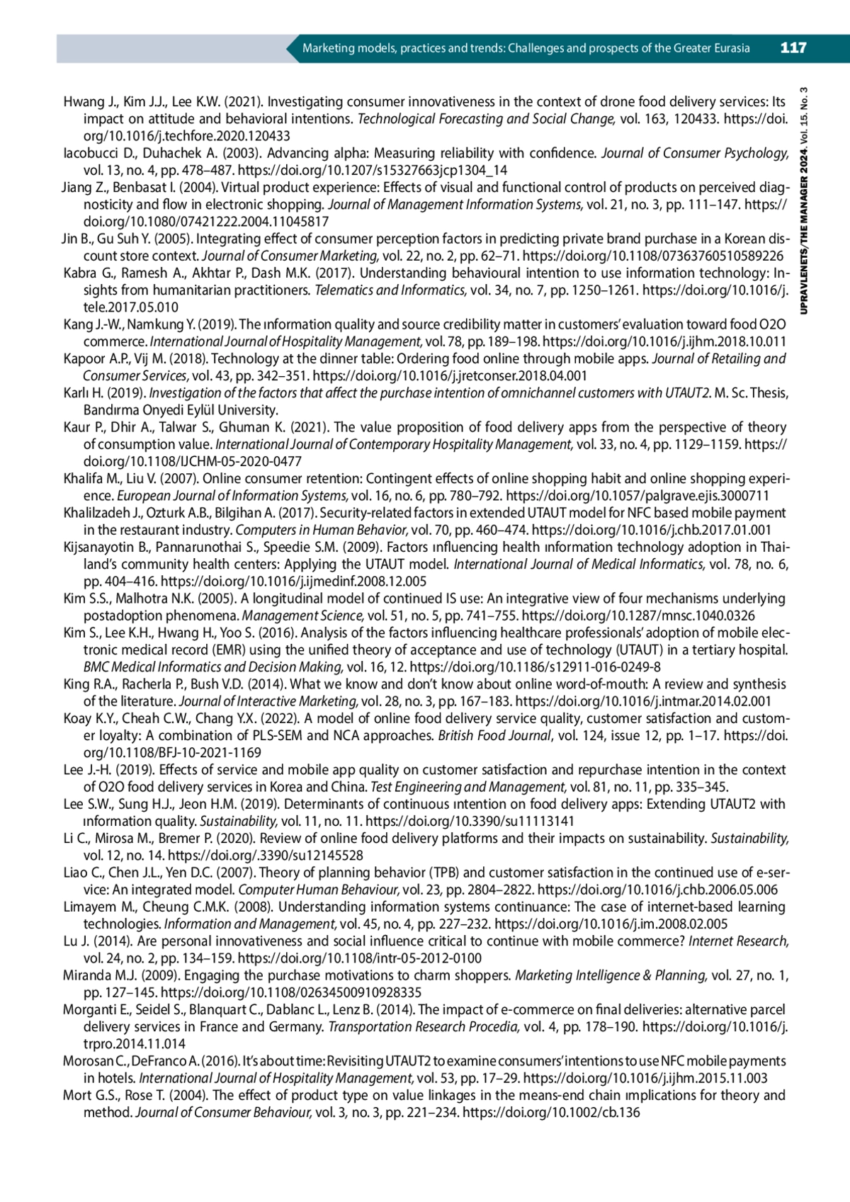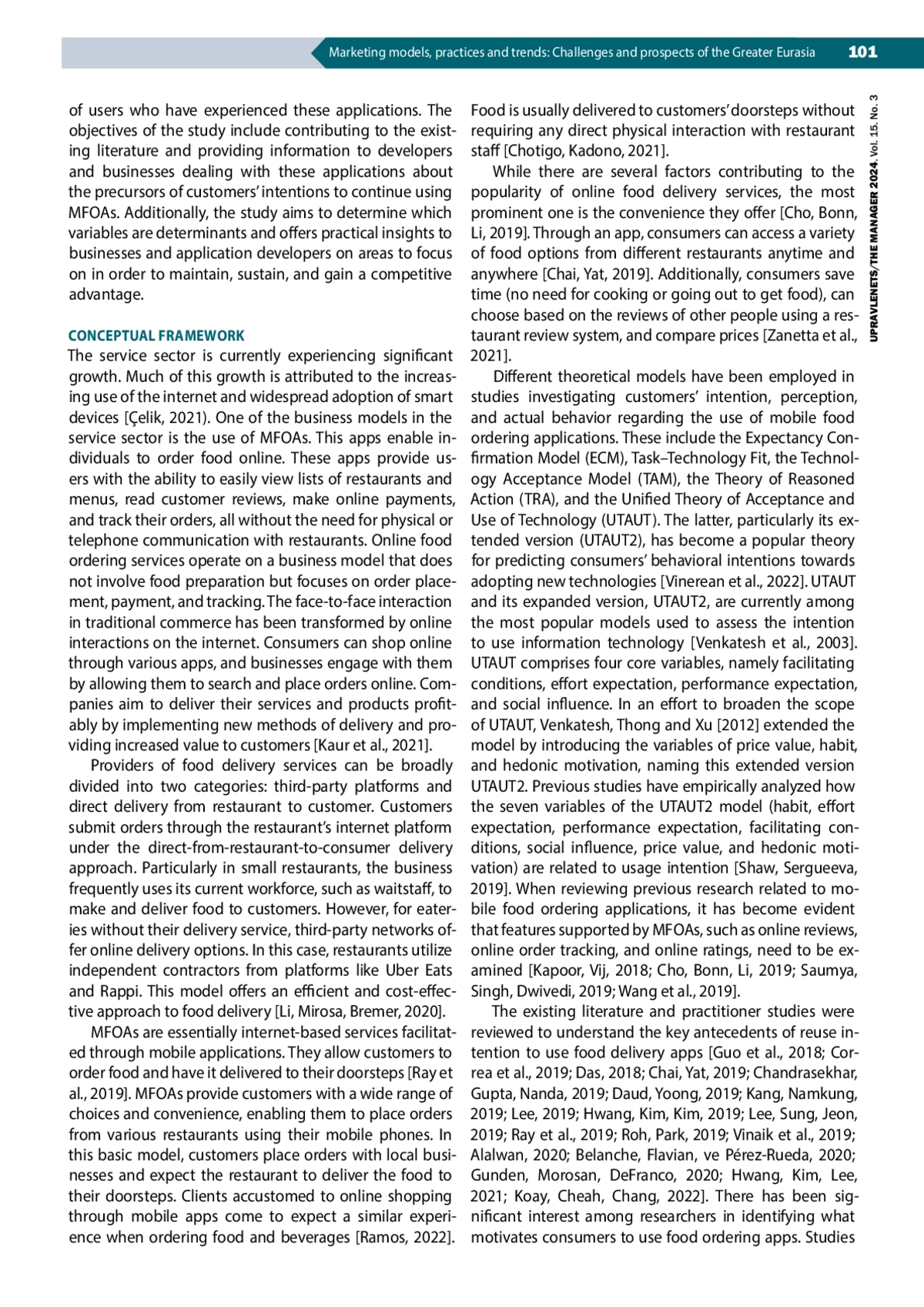 ERDEM I. K., ÇELIK K. WHY DO PEOPLE USE MOBILE FOOD ORDERING APPS?: EXTENDED UTAUT2 // УПРАВЛЕНЕЦ. 2024. Т. 15 № 3