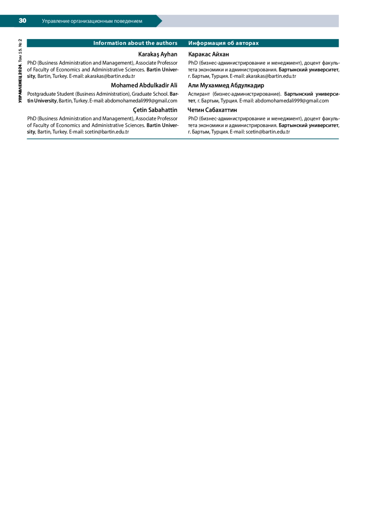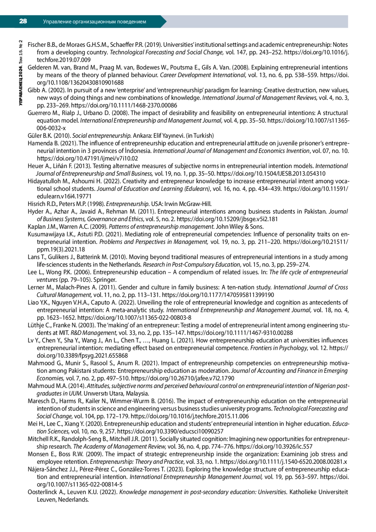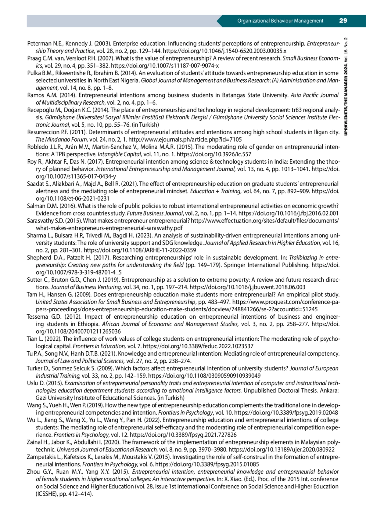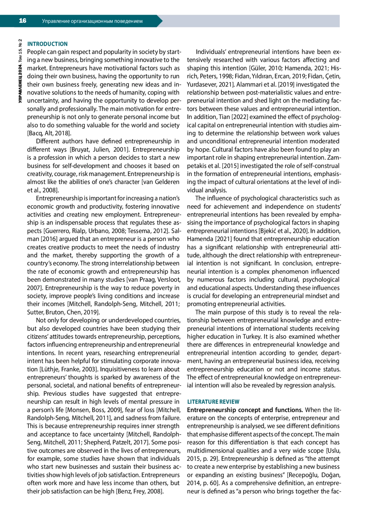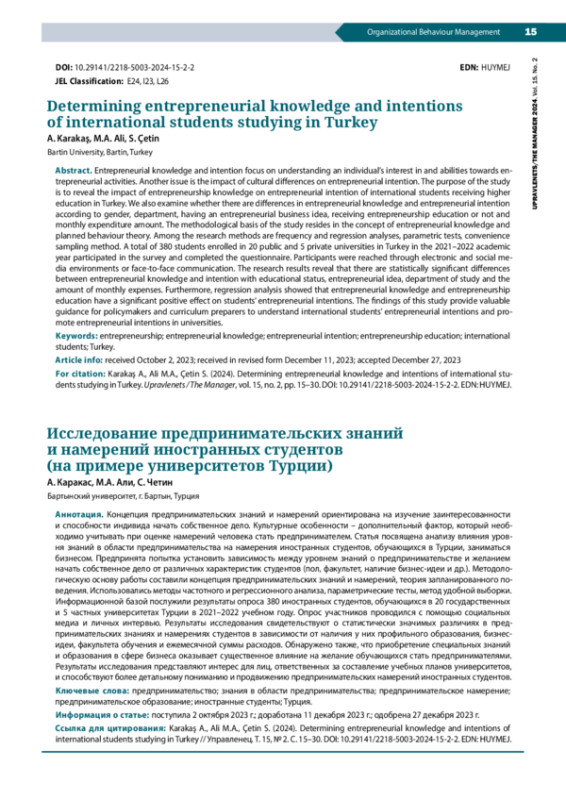 KARAKAŞ A., ALI M. A., ÇETIN S. DETERMINING ENTREPRENEURIAL KNOWLEDGE AND INTENTIONS OF INTERNATIONAL STUDENTS STUDYING IN TURKEY // УПРАВЛЕНЕЦ. 2024. Т. 15 № 2