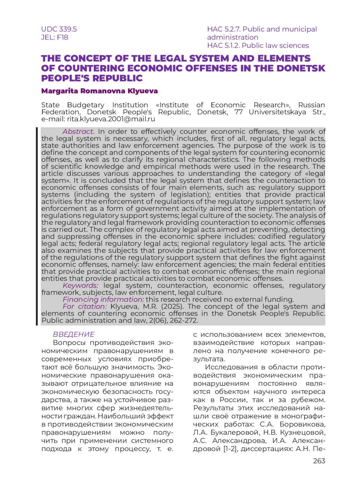 6. Хараберюш И.Ф. Техническое обеспечение экономической безопасности ДНР как субъекта Российской Федерации: концептуальный подход // Азиатско-Тихоокеанский регион: экономика, политика, право, 2023. Т. 25. № 3. С. 15-30.