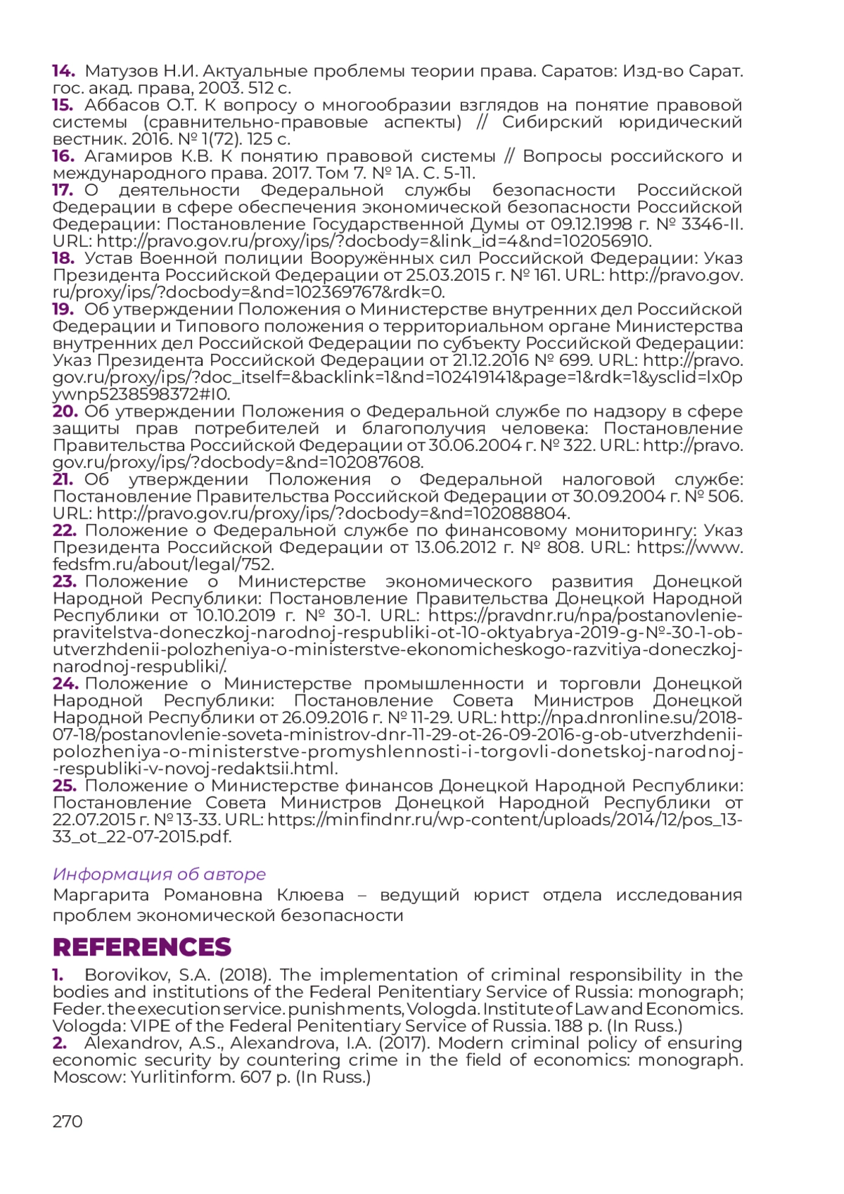 19. Об утверждении Положения о Министерстве внутренних дел Российской Федерации и Типового положения о территориальном органе Министерства внутренних дел Российской Федерации по субъекту Российской Федерации: Указ Президента Российской Федерации от 21.12.2016 № 699. URL: http://pravo.gov.ru/proxy/ips/?doc_itself=&backlink=1&nd=102419141&page=1&rdk=1&ysclid=lx0pywnp5238598372#I0.