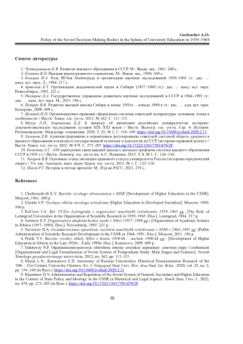 9. Хаминов Д.В. Администрирование и нормативное регулирование советской системой общего, среднего и высшего образования в контексте государственной политики и идеологии в СССР (историко-правовой аспект) // Вестн. Томск. гос. ун-та. 2022. № 479. С. 273-285. DOI: 10.17223/15617793/479/29