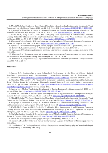5. Mahdi H.S., Sahari Y. A Corpus-Based Study of Translating Idioms from English into Arabic Using Audio-Visual Translation // Int. J. Inf. Learn. Technol. 2024. Vol. 41, № 3. P. 244-261. DOI: 10.1108/IJILT-07-2023-0128
