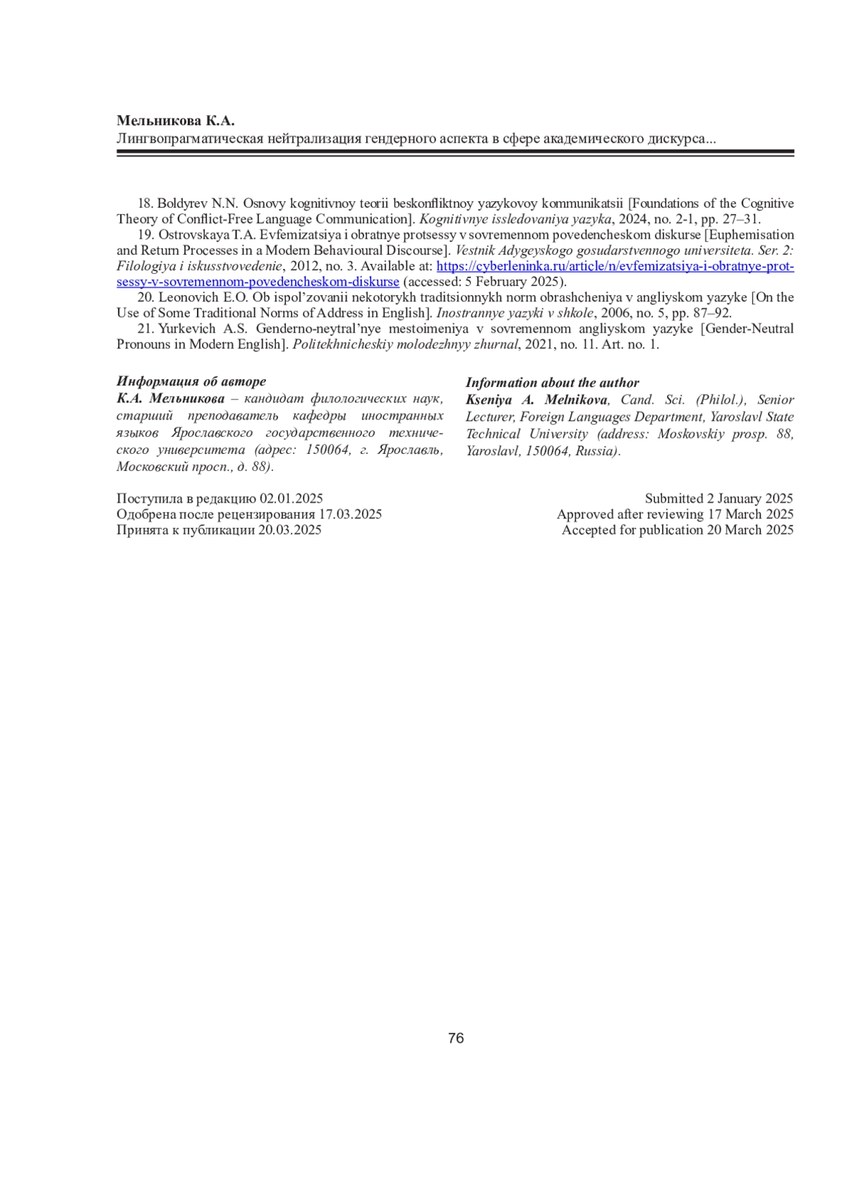 21. Юркевич А.С. Гендерно-нейтральные местоимения в современном английском языке // Политехн. молодеж. журн. 2021. № 11(64). Ст. 1. EDN: HNACHT