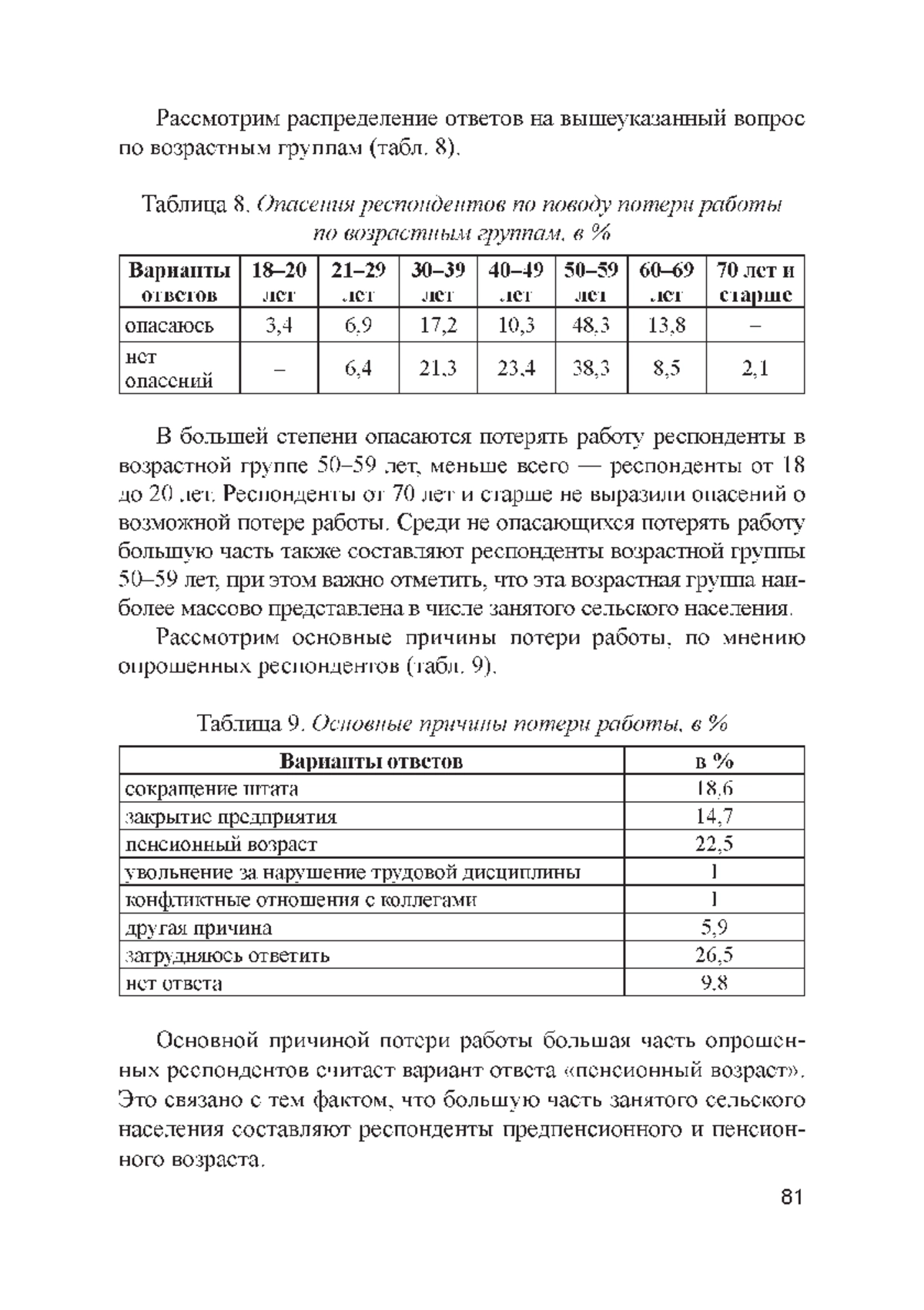В статье представлены результаты социологического опроса по проблеме занятости сельского населения, проанализирована структура занятости. Результаты исследования показывают, что большую часть занятого населения составляют респонденты возрастной группы 50-59 лет. Респонденты в основном заняты в сфере образования и муниципального управления, менее 10% — в сельскохозяйственных предприятиях. Такое распределение занятого населения отражает состояние аграрного сектора республики.