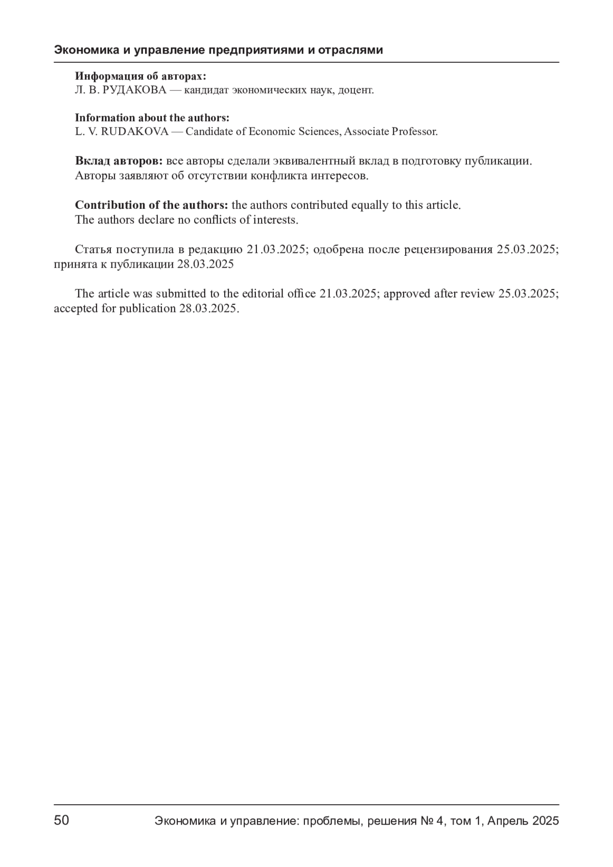 8. Рудакова Л. В. Оценка инновационных систем управления закупки и продажи товаров в предпринимательских структурах // Научно-практический теоретический журнал “Экономика и управление: проблемы, решения”. - М.: ИД “Научная библиотека”. - 2023. - № 2, Т. 3. - С. 36-42.