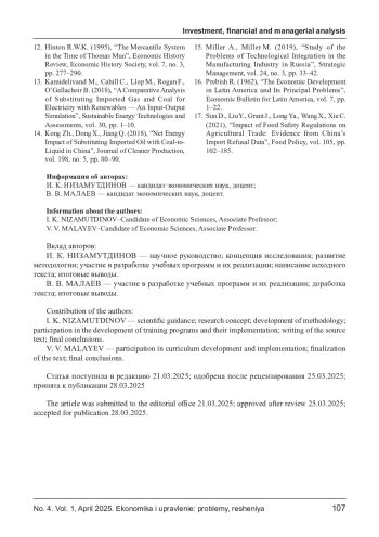 3. Балашов М. М. Импортозамещение в отрасли энергетического машиностроения // Стратегические решения и риск-менеджмент. - 2020. - № 11(2). - С. 182-195.
