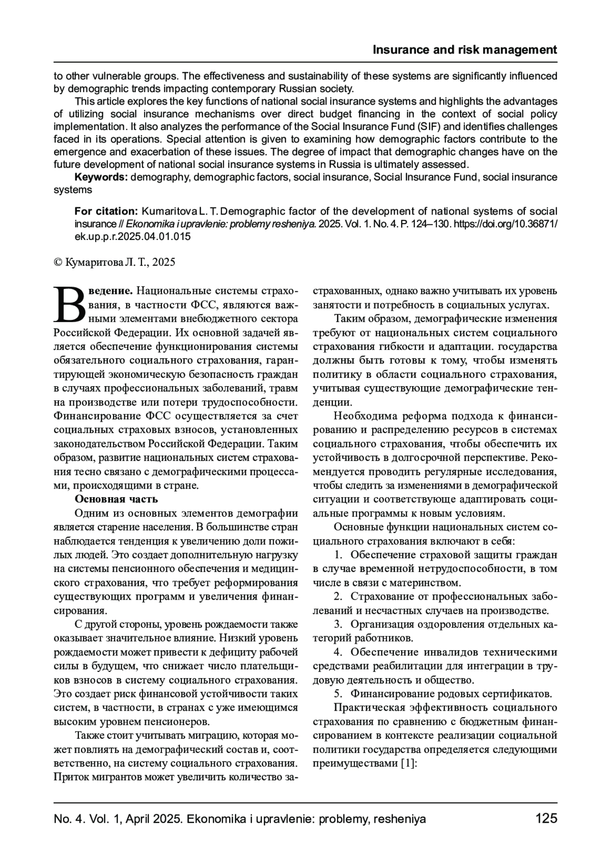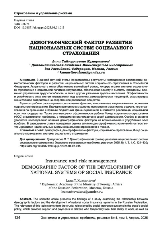 8. Наумов С. Ф. Демографические изменения и их влияние на систему социального страхования в России // Журнал социальной политики. - 2020. - Т. 12, № 3. - С. 45-60.