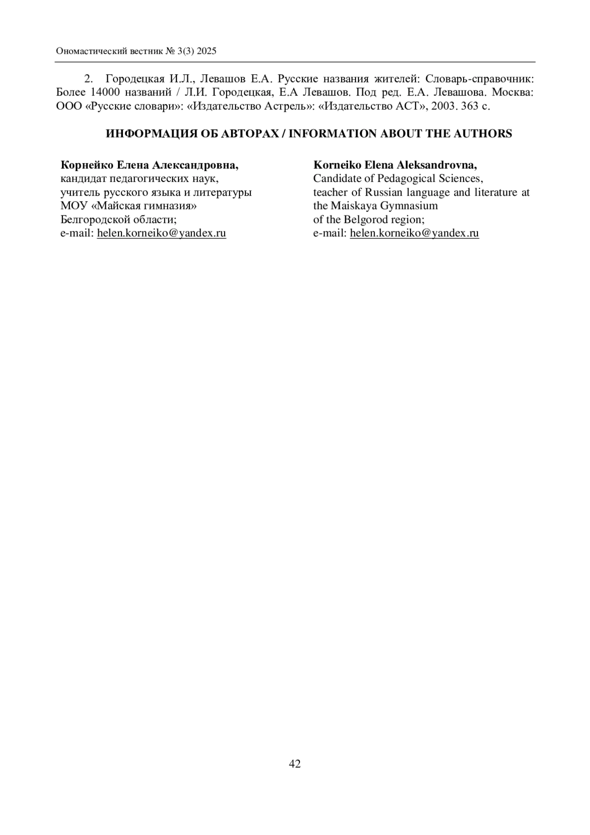 2. Городецкая И.Л., Левашов Е.А. Русские названия жителей: Словарь-справочник: Более 14000 названий / Л.И. Городецкая, Е.А Левашов. Под ред. Е.А. Левашова. Москва: ООО “Русские словари”: “Издательство Астрель”: “Издательство АСТ”, 2003. 363 с.