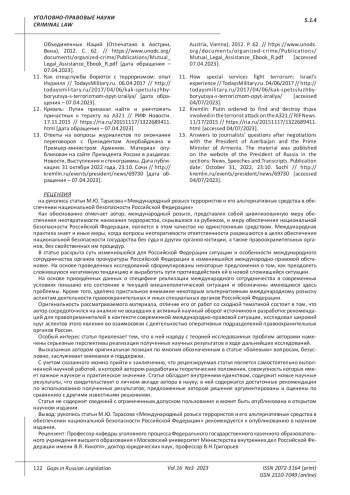 Information on the execution of the order of the Prosecutor General of the Russian Federation dated May 17, 2018 No. 295 “On the organization of prosecutorial supervision over the implementation of laws on countering terrorism”, prepared within the competence of the Main Directorate for International Legal Cooperation, January 2023 // Archive of the Main Directorate of International -legal cooperation of the Prosecutor General’s Office of the Russian Federation. 2023.