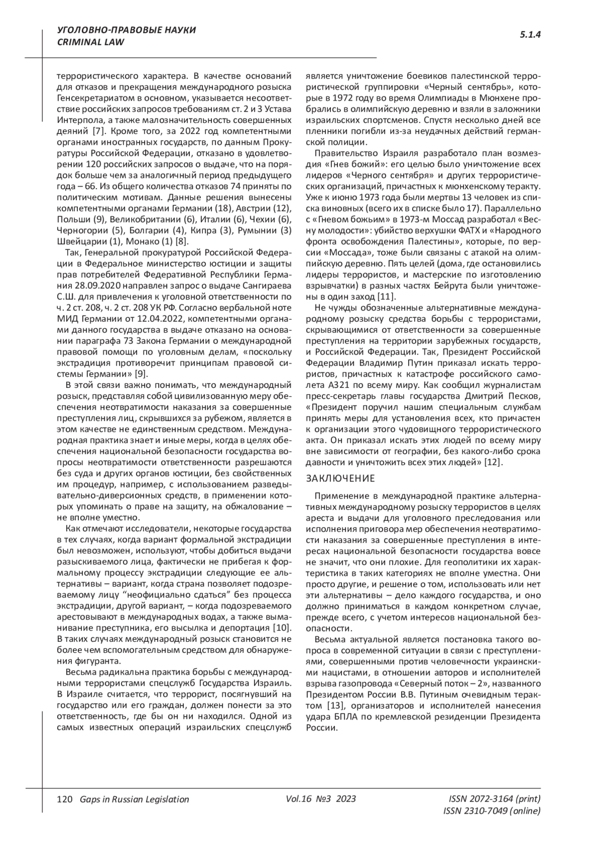 6. Лещенко О.В. Состояние и динамика международного розыска обвиняемых, осужденных и лиц, пропавших без вести // Юристъ-Правоведъ. 2015. № 3 (70). С. 90-93. EDN: UISJOP
