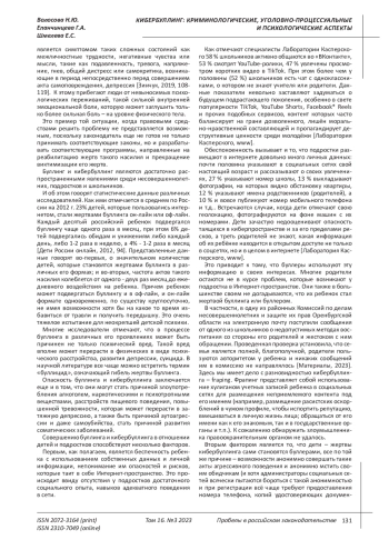 Zabelin S.E. The phenomenon of cyberbullying in the modern world / S.E. Zabelin // Substantive and procedural aspects of modern education: materials of the IV International Scientific and Practical Conference / Ed.-comp. I.A. Romanovskaya, E.A. Tarabanovskaya. - Astrakhan, 2022. - pp. 254-256. EDN: YBAUZC
