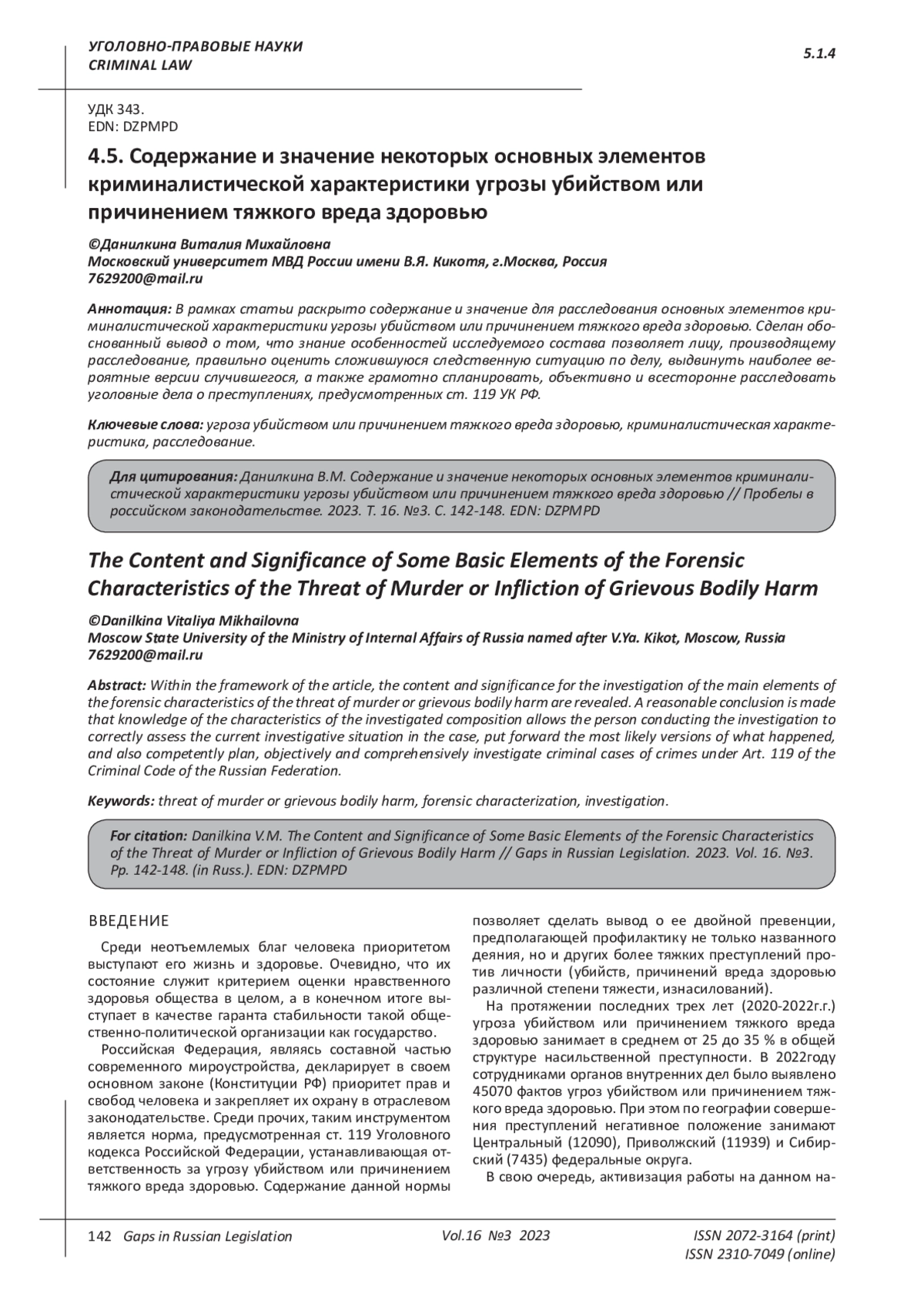 Statistical data of the FGKU “Main Information and Analytical Center of the Ministry of Internal Affairs of Russia”. Form “1-P” (455), book 1 URL: //https://xn-b1aew.xn-p1ai/folder/101762/item/15304733/ (date of access: 03/19/2023).