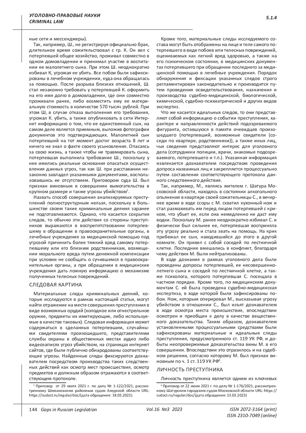 7. Приговор от 22 июня 2021 г. по делу № 1-176/2021, рассмотренному Шатурским городским судом Московской области. URL: https://sudact.ru/regular/doc/(дата обращения: 13.03.2023).