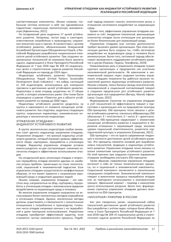 Ключевые фразы: охрана окружающей среды, индикаторы, отходы, устойчивое развитие, управление, ЦЕЛИ УСТОЙЧИВОГО РАЗВИТИЯ
