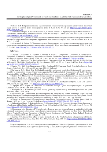 Статья: ПСИХОФИЗИОЛОГИЧЕСКИЕ КОМПОНЕНТЫ ФУНКЦИОНАЛЬНОЙ ГОТОВНОСТИ СПОРТСМЕНОВ С ПОРАЖЕНИЕМ ОПОРНО-ДВИГАТЕЛЬНОГО АППАРАТА ПРИ РАЗНОЙ НАПРАВЛЕННОСТИ ТРЕНИРОВОЧНОГО ПРОЦЕССА (2025)