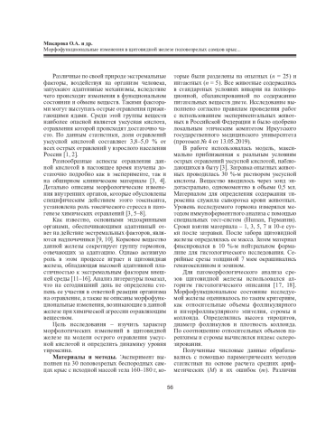 Ключевые фразы: морфология щитовидной железы, отравление уксусной кислотой, токсико-стрессорная реакция, морфофункциональные изменения в щитовидной железе, тиреоидные гормоны, тироксин