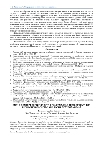 Приведены эволюция определения понятия «устойчивое развитие», расширение его признаков, что связано с динамикой характеристик среды производственно-экономических и социальных систем. Представлена комплексная модель «устойчивого развития», которая позволяет связать составляющие модели с показателями внешней и внутренней среды.