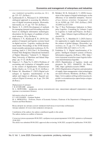 19. Пулатов М., Мусохон У. Цифровые технологии в логистике: преобразование сферы и воздействие на эффективность // Raqamli iqtisodiyot (Цифровая экономика). 2023. № 4. С. 236-248.